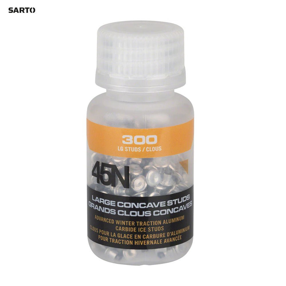Le crampon 45NRTH est fabriqué en deux parties et offre des performances optimales grâce à sa conception concave en carbure d'aluminium. La large couronne concave, avec ses espaces ouverts et ses arêtes saillantes, double la surface de contact, améliorant ainsi la traction et l'adhérence.