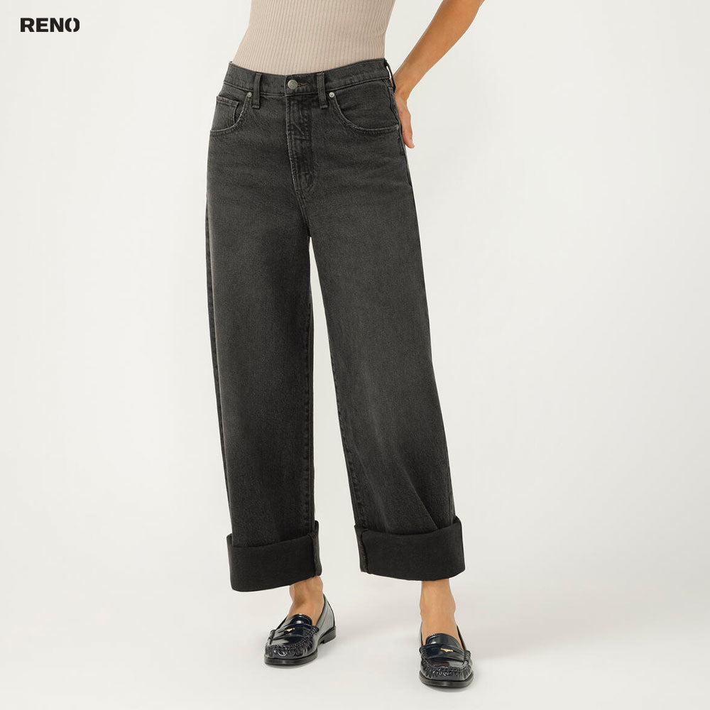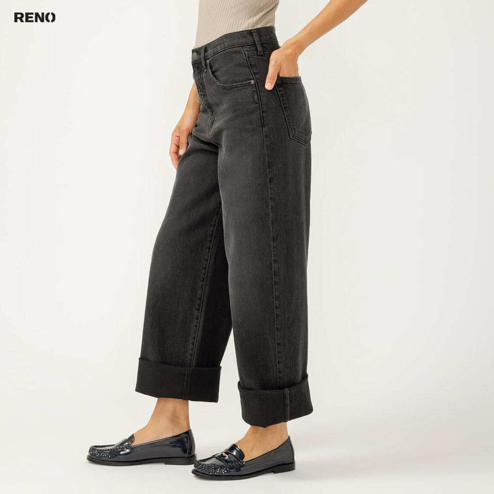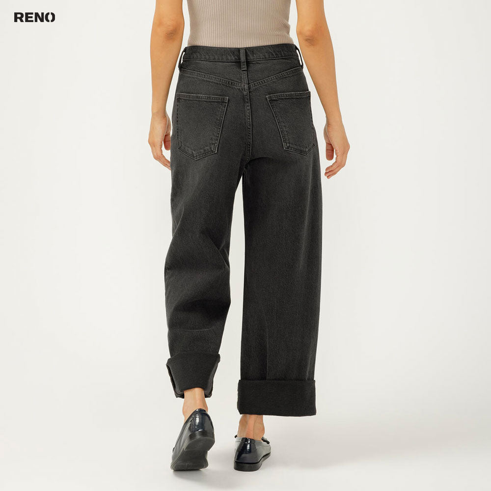 - Jean noir à jambes larges et coupe décontractée, court